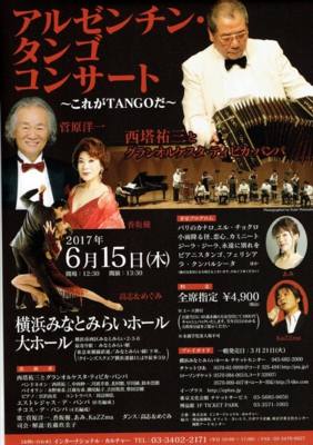 - 6月15日(木)横浜みなとみらい大ホールにて行われます、西塔祐三とオルケスタ・ティピカ・パンパのアルゼンチンタンゴコンサートに出演いたします。
