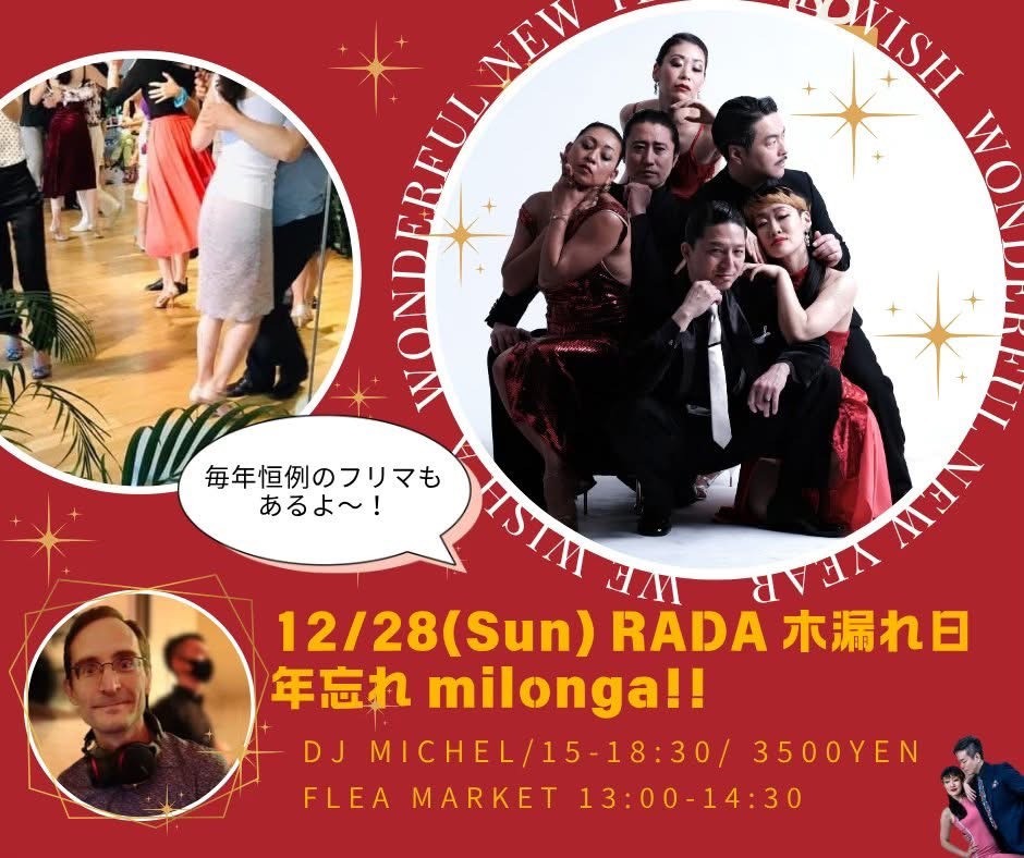 12月28日(日)スタジオRADA主催歳忘れMilongaに出演させて頂きます。